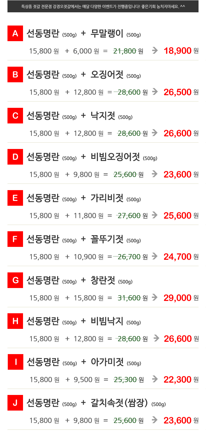 셋트특가: 선동명란 + 젓갈1종